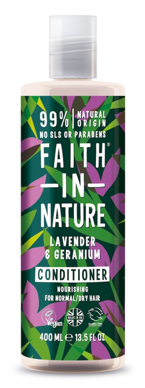 Zklidňující a obnovující kondicionér v profesionální kvalitě pro normální až suché vlasy. Odborníky z Faith in Nature vyvinutý kondicionér z blahodárných aromaterapeutických olejů vyživujících vlasy a vlasovou pokožku za použití přírodních surovin. Esenciální oleje z levandule a pelargonie zanechávají vlasy a pokožku čisté, zklidněné, obnovené bez nadměrného vysušení. Levandule také přispívá k vyrovnání produkce kožního mazu.